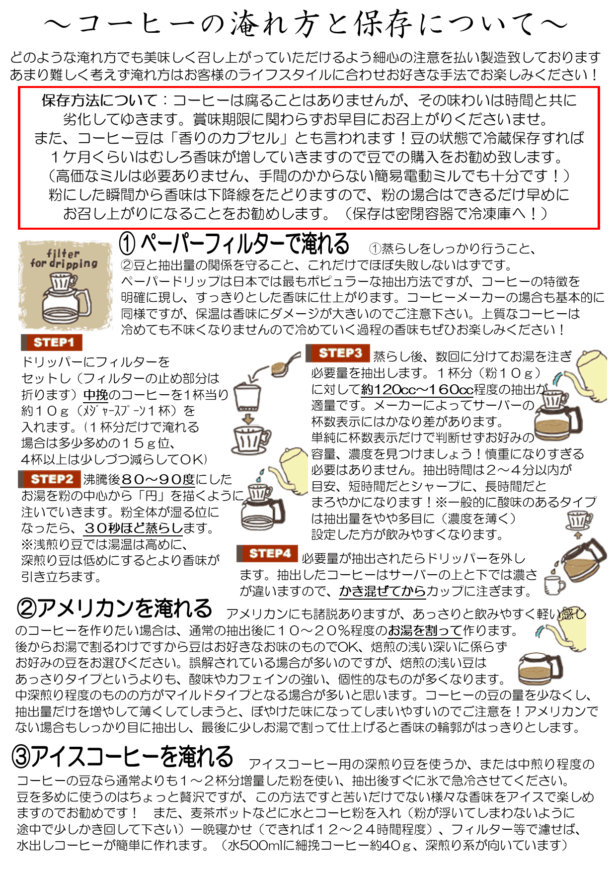 コーヒーの淹れ方と保存について