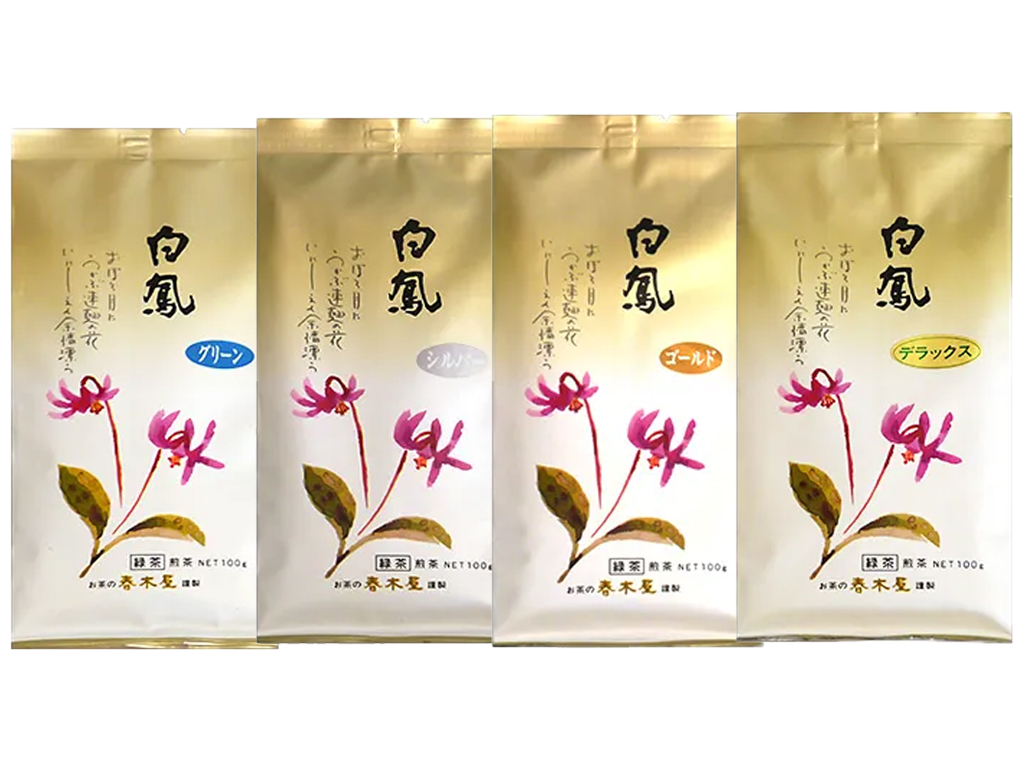最高級の「デラックス」(¥2,160/100g)から「ゴールド」(¥1,620)、「シルバー」(¥1,296)、「グリーン」(¥1,188)と4種類の白鳳ブランドのラインナップとなっています。